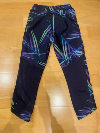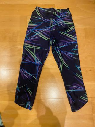 Conjunto de tres mallas deportivas hasta la rodilla. - Diseño con detalles de colores vibrantes. - Cintura elástica para mayor comodidad. Talla S/M No envio En perfecto estado