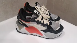 Zapatillas deportivas Puma RS-X en talla 39. Combinan diseño moderno y comodidad. - Parte superior de malla y ante. - Detalle de color rojo. - Suela de goma. - Cierre con cordones.