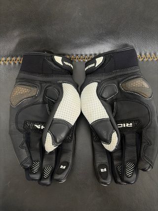 Guantes de moto Richa para verano, combinando blanco y negro. Talla XL - Diseño ventilado con malla. - Protecciones en nudillos y dedos. 4 puestas literales, puede verse la palma exteriormente que esta como a estrenar porque los he usado 4 dias el año pasado en verano, se venden por venta de moto Alpinestars dainese motogp enduro