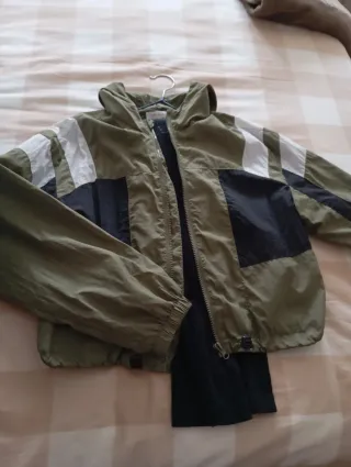 Chándal de tactel con un diseño moderno y bloques de color. - Mangas con detalles en blanco y gris. - Cremallera frontal. - Capucha integrada. -Regalo las dos mallas estan más usadas.