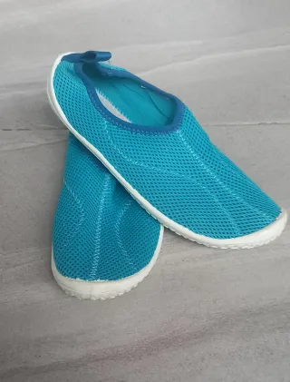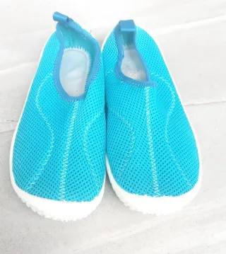 Cangrejeras de malla azul turquesa - Talla 36 - Material de rejilla favorecen la evacuación del agua y el secado - Suela blanca evitara que resbalen sobre superficies de arena y guijarros. - Cierre elástico. - Pequeña mancha el la suela