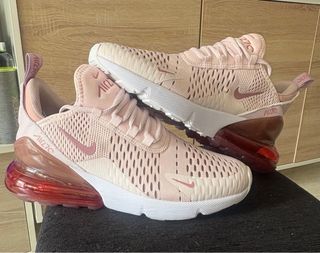 Zapatillas Nike Air Max 270 en tonos rosa y rojo. Un diseño moderno y llamativo. - Parte superior de malla transpirable. - Unidad Air Max visible en el talón. - Suela de goma para mayor tracción.