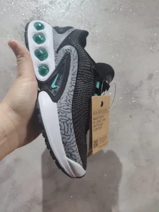 Zapatillas deportivas Nike con un diseño moderno y detalles llamativos. - Parte superior de malla transpirable. - Suela con amortiguación visible. - Detalles en color verde azulado. - Fabricadas con al menos un 20% de contenido reciclado.