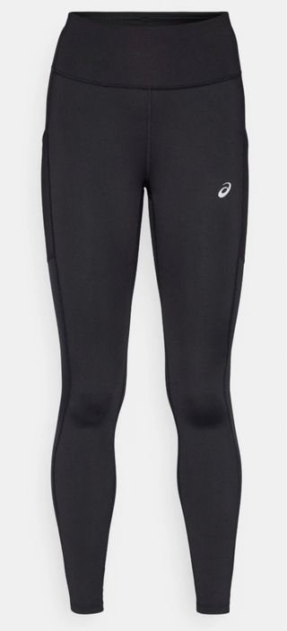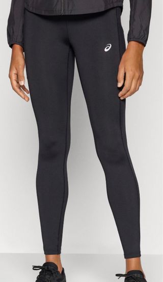 Mallas de correr Asics para mujer en color negro. Dispoble en talla M y L Logo de Asics en la pierna. Modelo CORE.