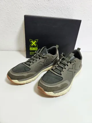Zapatillas Munich Kava en talla 44. - Exterior de ante y malla. - Suela de goma con motas. - Cierre de cordones. Apenas una semana de uso, sin desgastes en suela ni puntera.