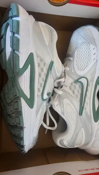 Zapatillas deportivas Nike en color blanco con detalles en verde. - Diseño moderno y ligero. - Malla transpirable. - Suela de goma. - Cierre de cordones.