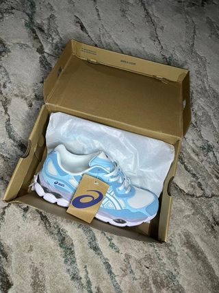 Zapatillas deportivas Asics Gel NYC en tonos azules y blancos. - Diseño moderno y cómodo. - Detalles en malla transpirable. -Totalmente nuevas 🆕 -Envio rapido 24/48h -para mujer y hombre 😍 -Cualquier cosa no dudes en escribirme 🔝