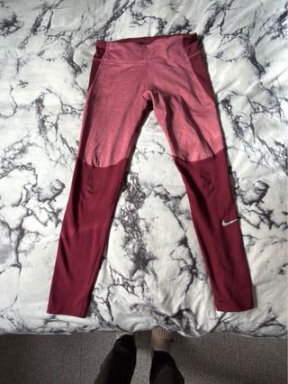Mallas deportivas Nike con un diseño moderno y cómodo. - Paneles laterales en color rosa y blanco. - Cintura elástica alta. - Detalle de logo en la pierna. - Bolsillo en la parte trasera Usadas solo una vez. Están en perfecto estado