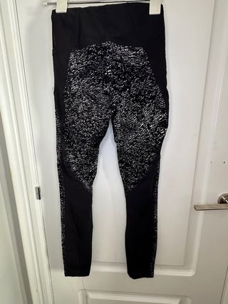 Leggings deportivos con un diseño moderno y llamativo. - Estampado abstracto en blanco y negro. - Paneles laterales de malla. - Cintura elástica cómoda. - Disponible envío y pack con reducción de precio