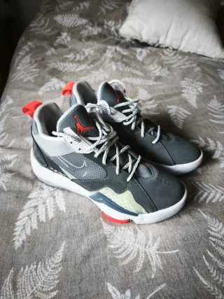 Estado Impecable. Solo se han usado un día, para probarmelas. Están como nuevas, sin marcas de desgaste ni suciedad. Unidades Zoom Air visibles que ofrecen una pisada muy cómoda. Mezcla de ante, malla y materiales sintéticos de alta calidad. Gris antracita con detalles en rojo carmesí y blanco.
