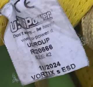Calzado de seguridad de la marca U-Power. Diseñadas para ofrecer protección y comodidad. - Exterior en ante y malla. - Detalle de logo en amarillo. - Cordones amarillos. - Suela de goma.