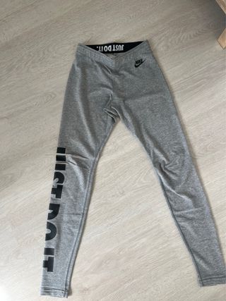 Mallas deportivas Nike para mujer, en talla XS. Perfectas para entrenar o para el día a día. - Cintura elástica con logo. - Diseño con logo JUST DO IT en la pierna. - Tejido cómodo y flexible.