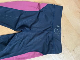 Mallas de equitación para niña de la marca Kingsland. - Diseño bicolor en negro y rosa. - Tejido con agarre en rodillas. - Talla 158-164. En perfecto estado, usado en 10 clases Sin manchas