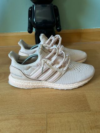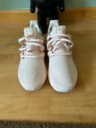 Zapatillas Adidas Ultraboost en tonos beige y rosa. Un diseño moderno y cómodo. - Parte superior de malla transpirable. - Detalle de las tres bandas. - Suela Boost para un retorno de energía óptimo.