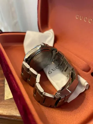 Elegante reloj Guess con un diseño llamativo. - Esfera con detalle de león. - Combinación de colores dorado y negro. Solo en mano