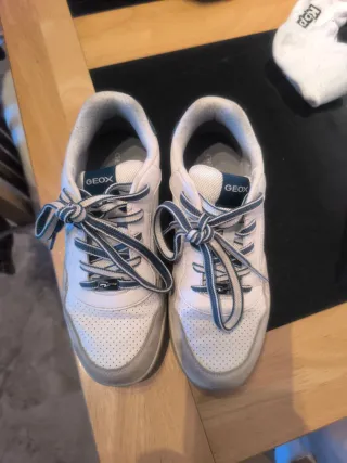 Zapatos Geox niño blancos, gris y azul