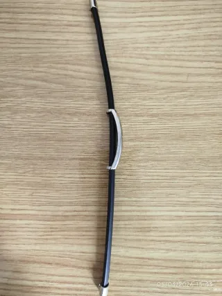 Pulsera con banda negra y un adorno central de metal. - Diseño moderno y minimalista. - Detalle metálico con grabados. - Cierre metálico Se hace lotes con otros productos