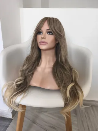 Peluca de fibra japonesa con un degradado de color. - Fibra sintética de alta calidad. - Diseño con capas y ondas. - Aspecto natural y suave. Lleva clips, banda elástica para una óptima sujeción. Lleva malla para la cabeza.