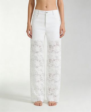 Pantalón vaquero de campana mujer encaje