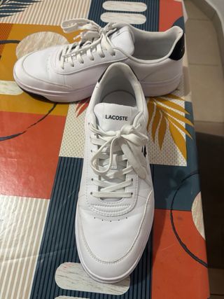 Zapatillas deportivas de la marca Lacoste. - Diseño clásico en blanco con detalles en negro. - Logo del cocodrilo bordado en el lateral.