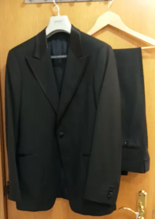 Elegante traje de Armani en color negro. - Chaqueta con solapa de satén. - Pantalón a juego. Nuevo a estrenar. - Perfecto para eventos formales. Se ha pagado más de 1000€ por este traje, y está nuevo.