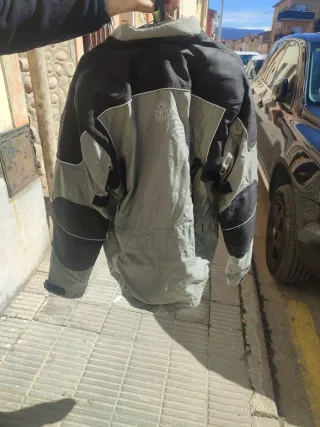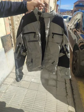 Chaqueta de estilo motero con un diseño moderno. - Paneles en color gris. - Detalles en color negro. - Cremalleras en los bolsillos.