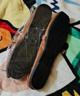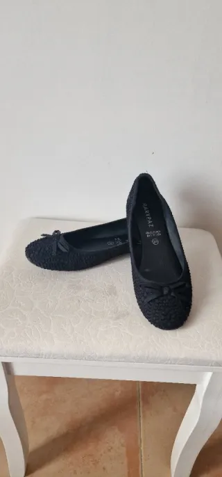 Manoletinas planas, talla 38. Un calzado cómodo y versátil. Puesta una vez - Diseño con lazo decorativo en la puntera.