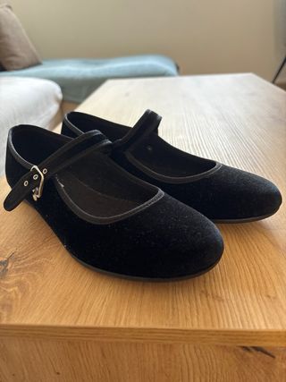 Manoletinas negras de terciopelo. - Cierre con hebilla. - Diseño elegante y cómodo.