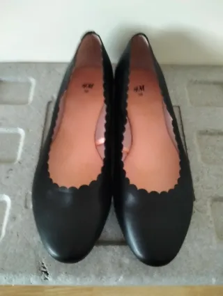 Manoletinas H&M de color negro con un diseño festoneado. - Detalle festoneado en el borde. - Interior en tono rosa pálido. - Logo de H&M en la plantilla.