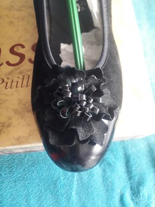 Marca Pitillos, nuevas, usadas un día en boda. Súper cómodas, suela de goma, cuña interior. Ideales para patear en Semana Santa o cambiarse los tacones en una boda. Bailarinas, zapatos planos, mujer, señora. Negros, charol y antelina, piel.