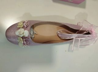 Zapato plano tipo manoletinas color lila claro o malva, talla 40 (talla pequeño más bien un 39) Solo puesto una vez para una boda.
