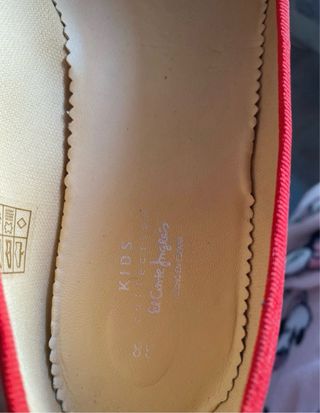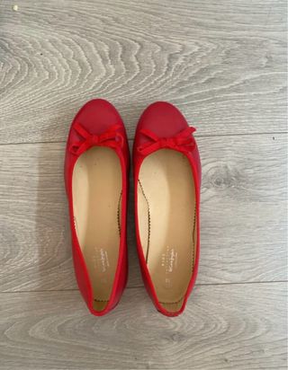 Manoletinas de la marca Sfera en color rojo, con un diseño elegante y femenino. - Material exterior de ante. - Cierre con lazos negros. - Tira elástica en el empeine. zapatos usados, merceditas, bailarinas, manoletinas