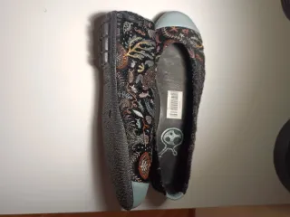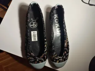 Manoletinas de la marca KOKUA con un diseño llamativo. - Exterior con estampado. - Detalle de puntera en color claro. - Logo de la marca en la plantilla interior. - Código de barras en la plantilla. - USADAS UNA SOLA VEZ