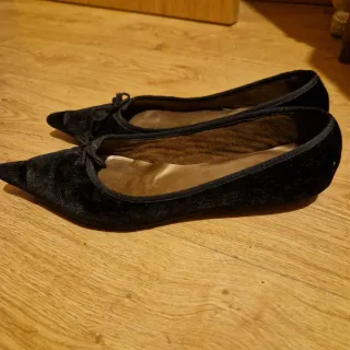 Elegantes manoletinas de terciopelo con diseño en punta. - Material exterior de terciopelo. - Detalle de lazo. - Suela interior con logo.