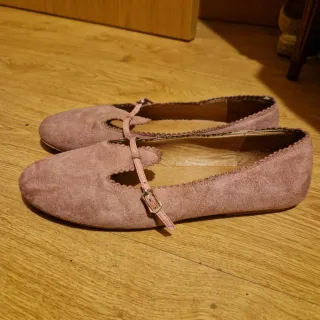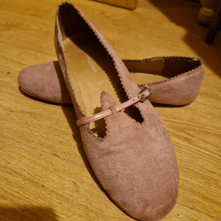 Manoletinas muy cómodas con un bonito diseño. - Acabado en tono rosa/malva. - Detalle de lazo en la parte delantera. - Ribete a contraste en el borde. Vendo manoletinas muy cómodas en tono rosa/malva, con un pequeño tacón que aporta comodidad y un toque elegante. Ideales para uso diario, trabajo o eventos informales. Detalles: • Diseño clásico tipo bailarina • Pequeño tacón bajo y estable • Lazo decorativo en la parte delantera • Plantilla cómoda con perforaciones • Tejido tipo lino/textil