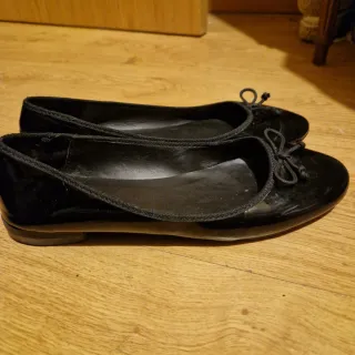 Manoletinas de ante color negro, con puntera estilo charol. Con cuña interior. Están sin usar, pero la puntera de una tiene un roce. Visita mi perfil o pregunta sin compromiso!