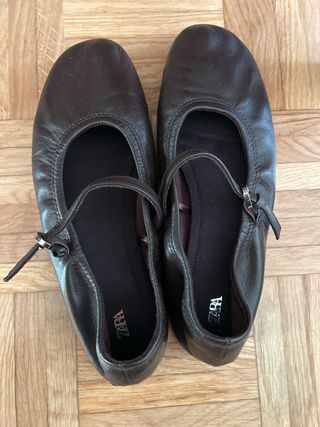 Manoletinas ZARA Cuero Marrón Talla 39
