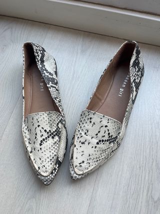 Elegantes manoletinas con un llamativo estampado de serpiente. - Diseño de punta afilada. - Acabado en imitación piel de serpiente. - Marca: Madden Girl.