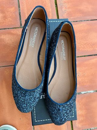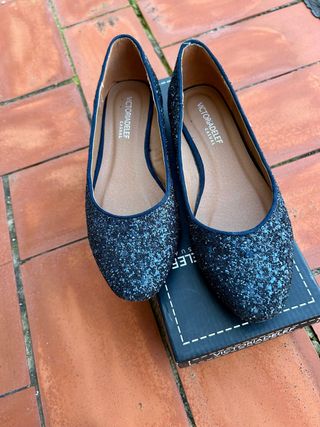 Manoletinas con un diseño brillante y elegante. - Acabado con purpurina. - Color azul y plateado. - En perfectas condiciones. - Sin estrenar.