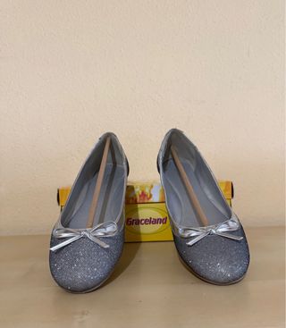 Manoletinas de la marca Graceland en color plateado. - Diseño con lazo. - Acabado brillante.