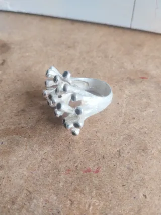 Anillo de plata con un diseño orgánico y moderno.fitma joidart - Material: Plata. - Detalles: Puntos negros en las puntas.