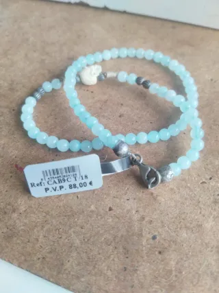 Pulsera de la marca Plata de Palo con detalles de calavera. - Cuentas de color azul. - Cierre de plata.