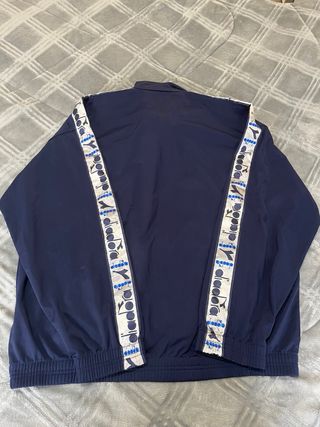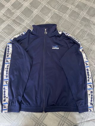 Chaqueta deportiva estilo retro de la marca Diadora. - Diseño con bandas laterales. - Cuello alto. - Cierre de cremallera frontal.