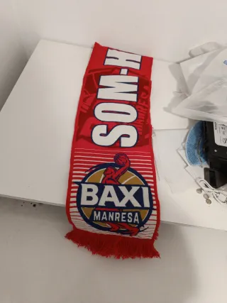 Bufanda del equipo Baxi Manresa con flecos. - Diseño con el logo del equipo. - Colores rojo y azul.