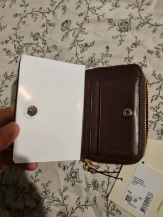 Monedero de piel de la marca Calvin Klein. Nuevo con etiqueta, viene en su caja. - Color marrón con detalles dorados. - Cierre de cremallera.