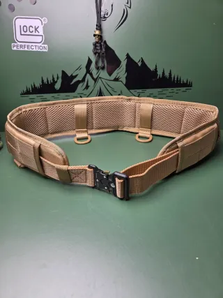 Cinturón táctico de estilo Molle con hebilla de metal. - Longitud total de 125 cm. - Cierre de seguridad con hebilla de metal. - Diseño con sistema Molle para acoplar accesorios. - Material resistente y duradero.