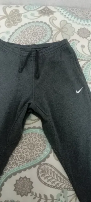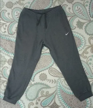 Pantalón original de Nike, color gris oscuro, básico y muy fácil de combinar para uso diario. Diseño cómodo y versátil, cintura elástica con cordón y puño en el bajo para mejor ajuste. Ideal para sport o streetwear, perfecto para entrenar, salir o estar cómodo en casa. Buen estado general, sin rotos ni defectos importantes. Listo para usar.
