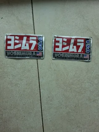 Dos emblemas de Yoshimura USA, perfectos para personalizar tu vehículo. Estan usados, pero originales. Material aluminio.No son pegaginas de papel, es material oryginal. Su estado es reparable. - Diseño clásico de Yoshimura. - Incluye Research and Development of America, Inc.