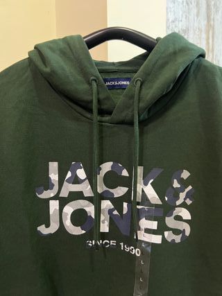 Sudadera con capucha de la marca Jack & Jones, nueva a estrenar, con su etiqueta de color verde. - Diseño con estampado de camuflaje. - Detalle de logo en la parte frontal. - Cordones ajustables en la capucha. Talla L 🚚 Envío rápido. 📩 Cualquier duda, escríbeme sin compromiso,