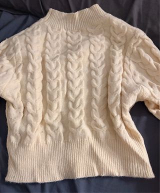 Jersey de lana con un bonito diseño trenzado. Es una prenda cómoda y cálida. - Tejido de lana. - Diseño de trenzas. - Cuello alto.